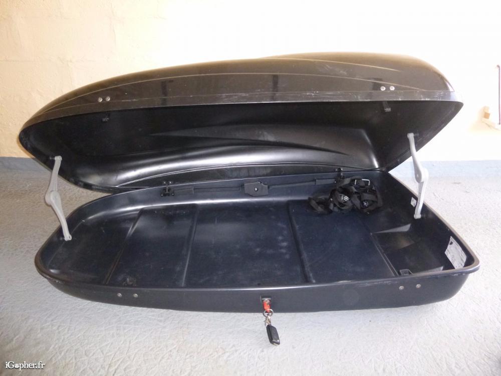 Un coffre de toit pour voiture. Il est d'occasion.