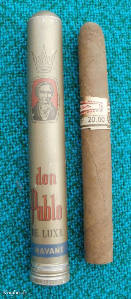 Un étui à cigare de luxe "Don Pablo", avec son cigare.