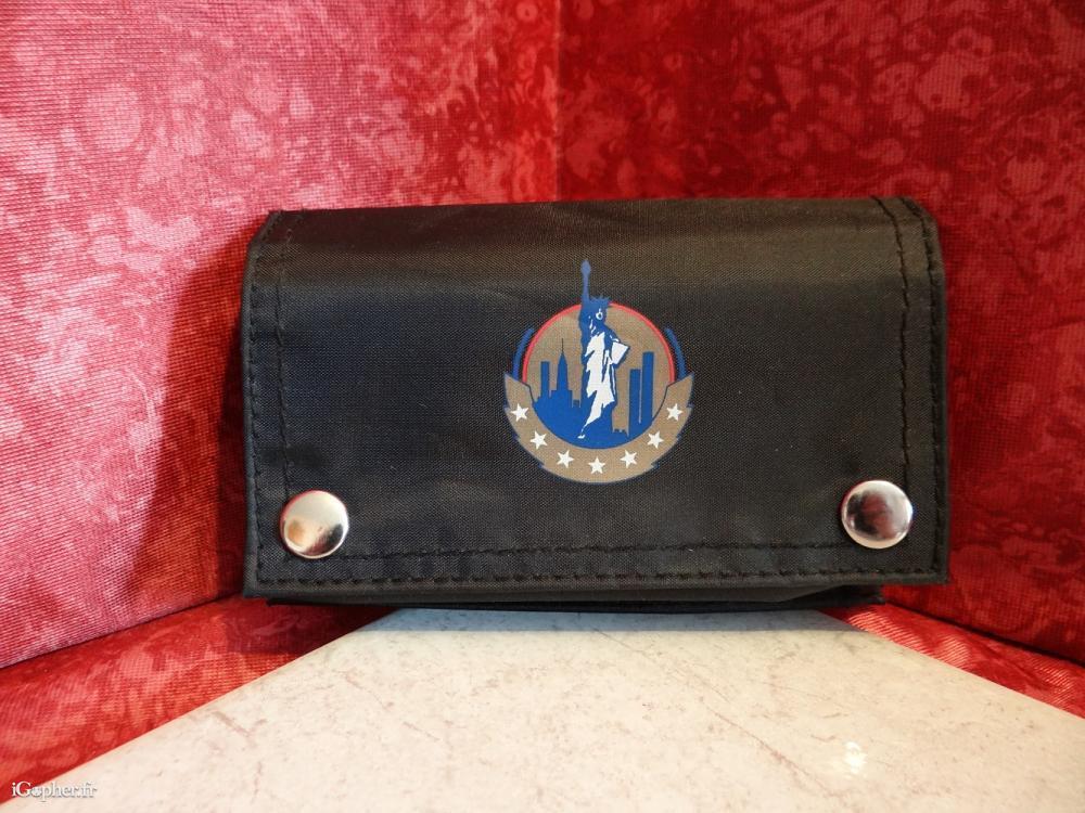 Une pochette, c'est une blague à tabac neuve avec une fermeture par deux boutons pressions. Elle est décoré avec une illustration de la Statue de la Liberté.