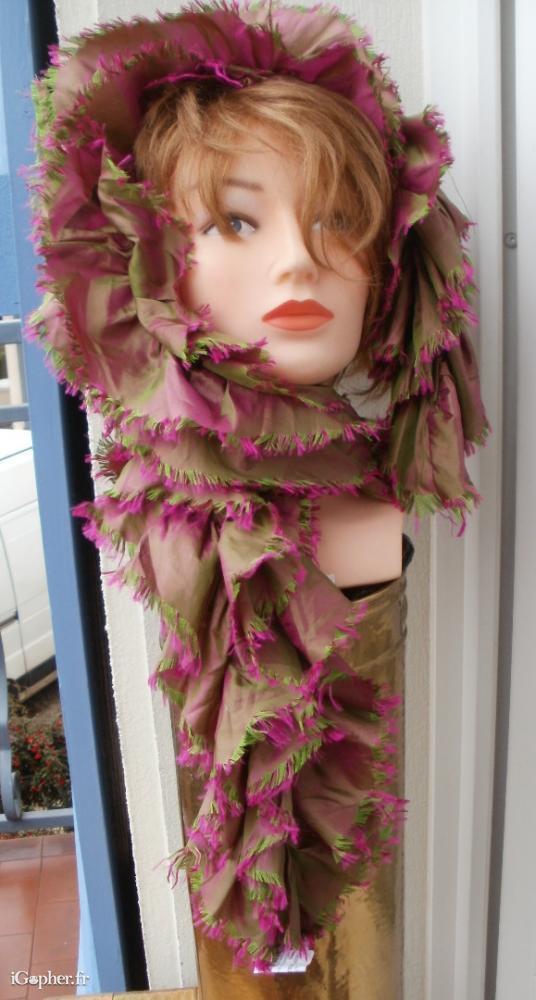 Un foulard froufrou en très bon état. Le foulard n'est pas prévu pour protéger la tête, c'est surtout pour que vous voyez bien l'article.