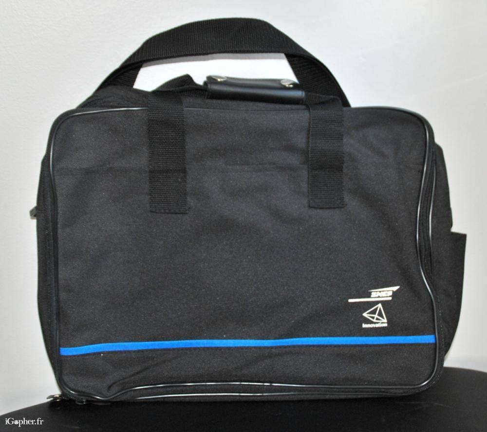Ce porte-documents "innovation SNCF" est en tissu imperméable de couleur noir. Il dispose d'une poignée renforcée et amovible et d'une bandoulière réglable.