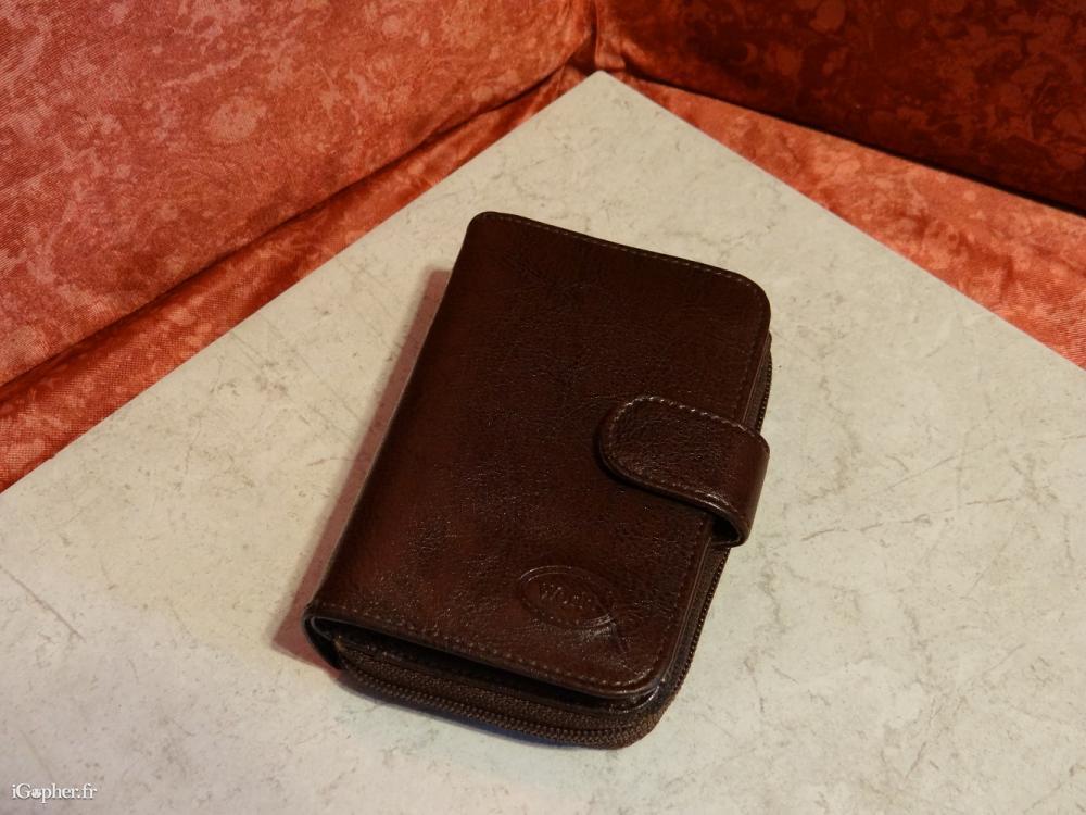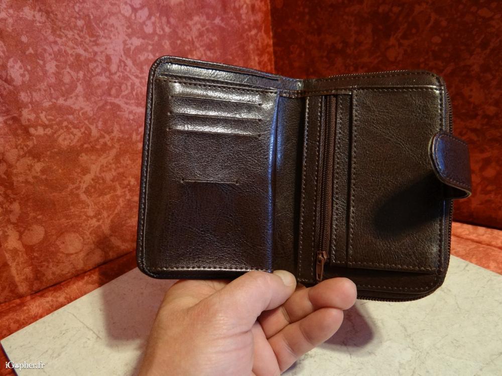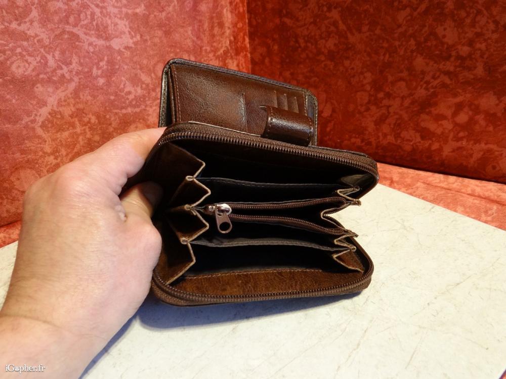 Ce porte monnaie dispose d'une fermeture par bouton pression et d'une autre fermeture par zip pour le rangement pièces.