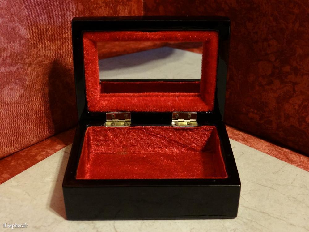 Une boite à bijoux d'occasion en bon état, mis à part un impact au dos de la boite (voir la 3ème photo de l'annonce).
