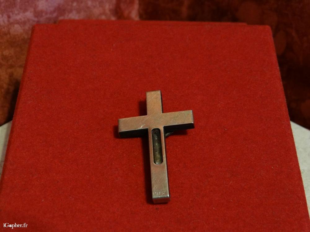 Une croix INIRI Lourdes, elle est en très bon état. Ce crucifix se porte en pendentif.