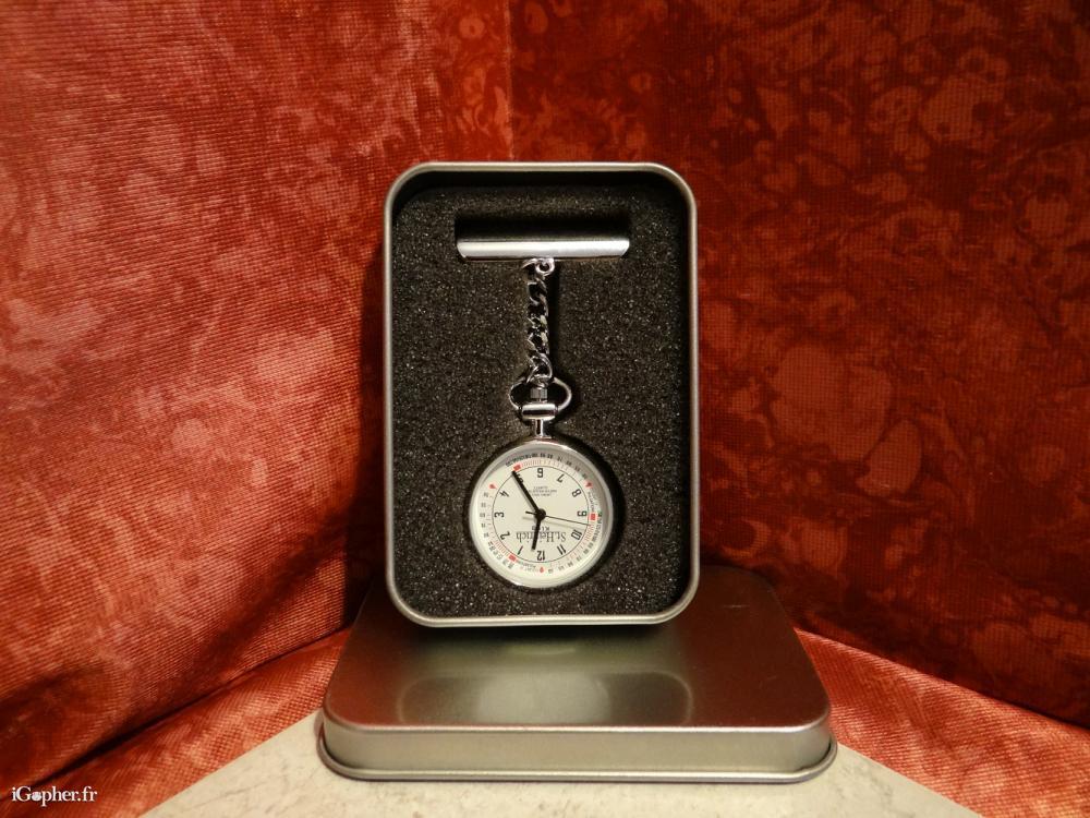 Une montre broche Saint Heinrich, elle est en métal et en parfait état, avec sa pile.