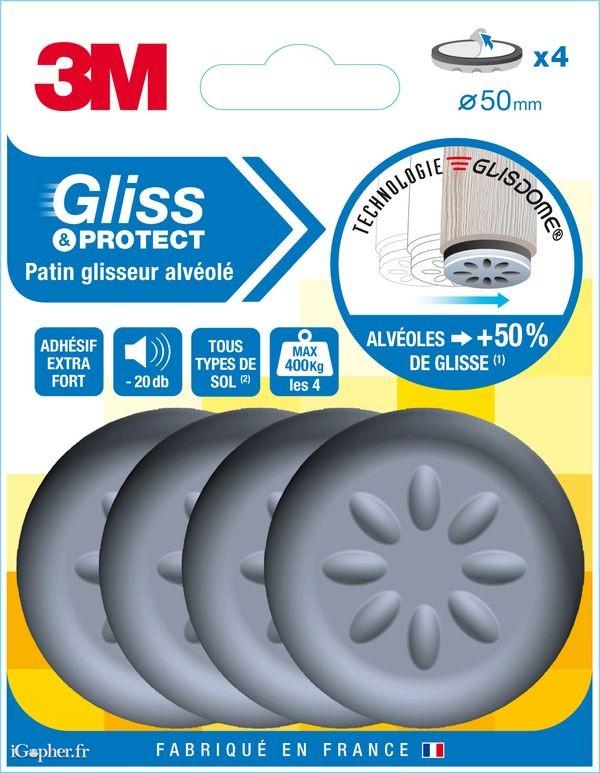 Un lot de 4 patins glisseurs adhésifs de 50 mm de diamètre, 3M GLISS PROTECT.