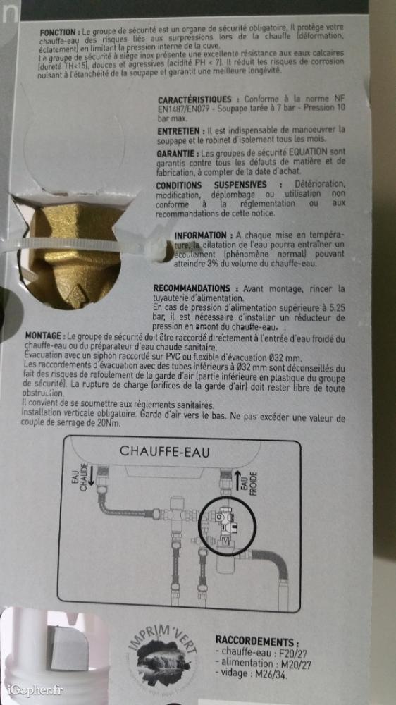 Un groupe de sécurité en Inox, il est anti tartre, chauffe eau.