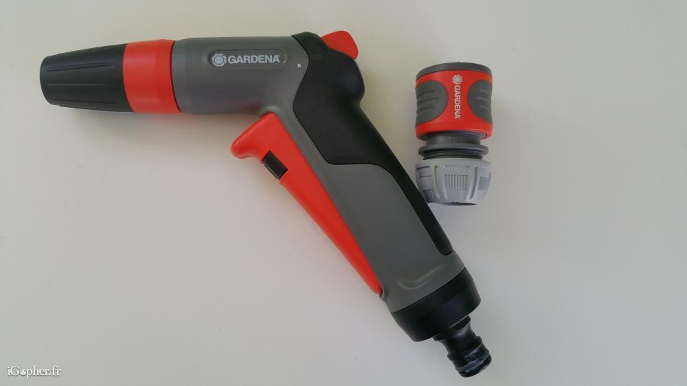 Un pistolet de Marque GARDENA avec un raccord GRATUIT.