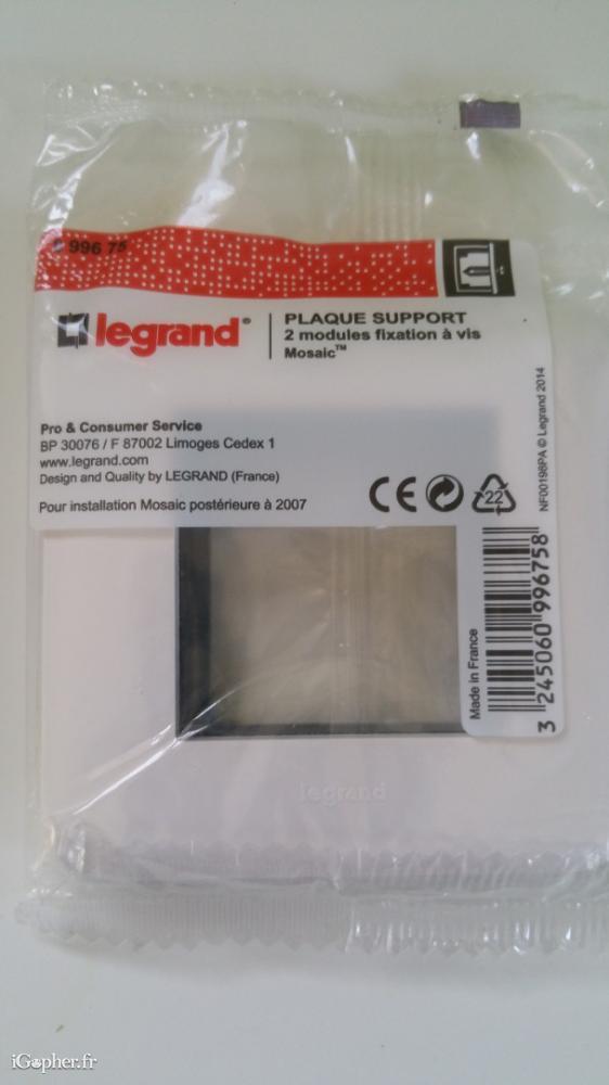 Une price électrique Mosaic de marque Legrand, mise en vente avec sa plaque et son support.