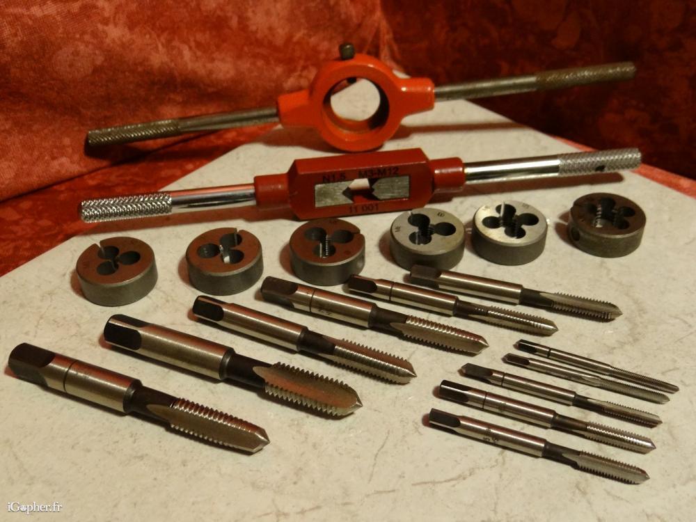 - 1 taraud M3 HSS / 1 taraud M3 6H HSS / 1 taraud M4 HSS / 1 taraud M5 HSS / 1 taraud M5 6H HSS / 1 taraud M6 HSS / 1 taraud M6 SH HSS / 1 taraud M8 HSS / 1 taraud M8 6H HSS / 1 taraud M10 HSS / 1 taraud M10 6H HSS.