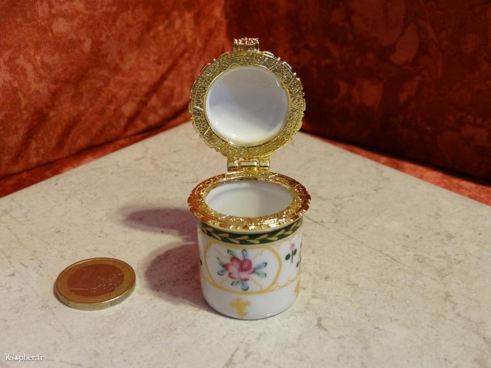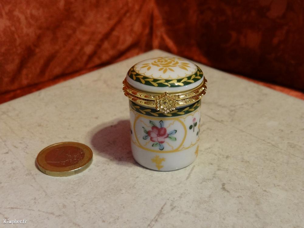 C'est un article d'occasion en bon état. Il s'agit d'une boite à pillule en porcelaine. Elle vous permettra peut-être de compléter votre collection.