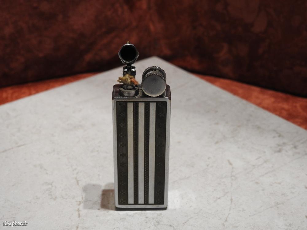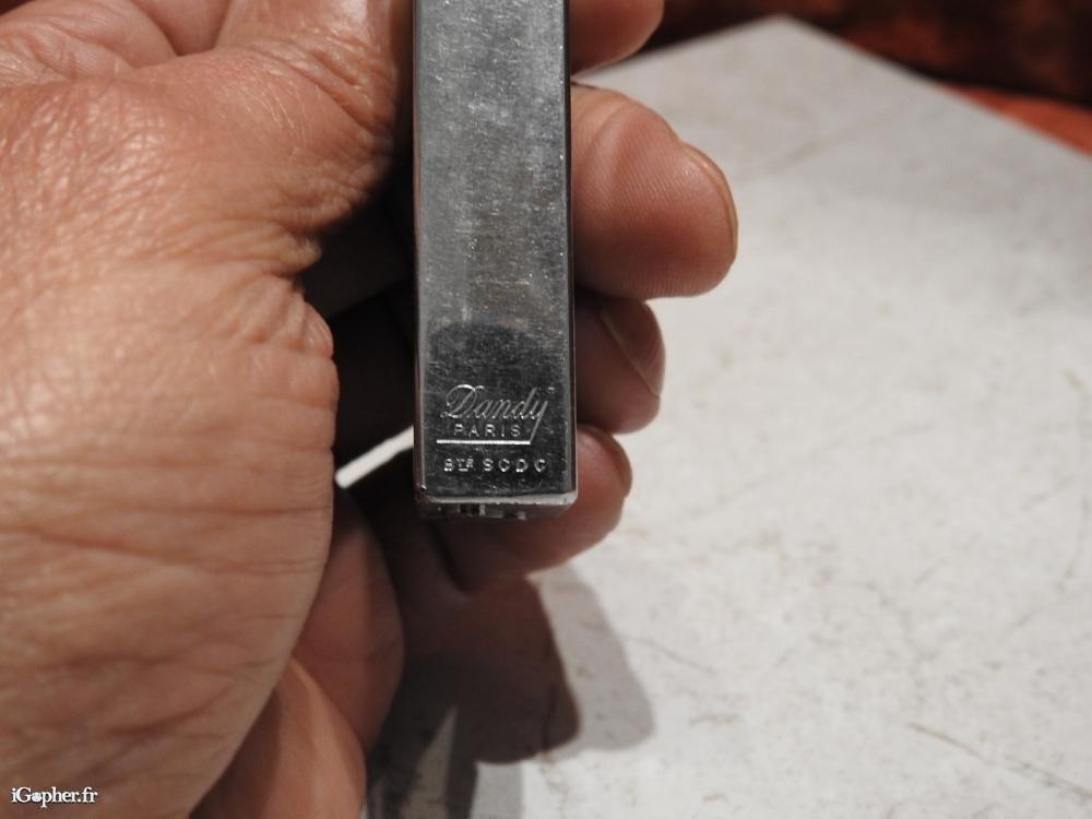 Briquet Dandy rectangulaire bicolore. Fonctionne à l'essence. Inscription : Dandy Paris Ste SCDG. Modèle peu fréquent. Hauteur 6.5 cm. Largeur 2,4 cm. Épaisseur 1,4 cm. Poids vide 47 grammes.
