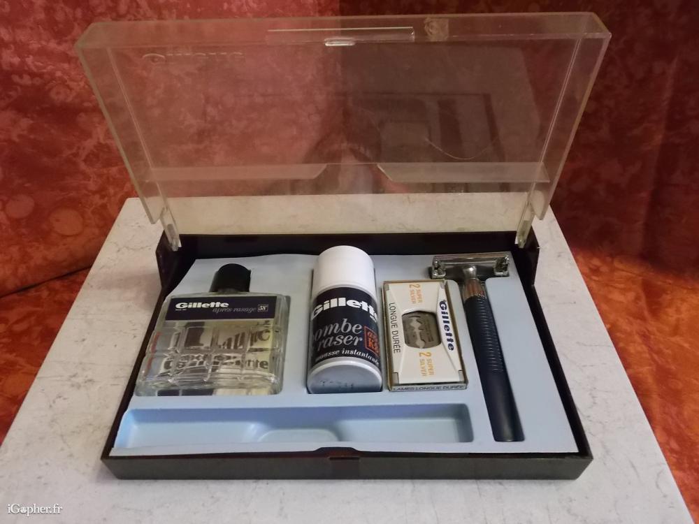 Coffret Gillette (rasoir, lames, mousse à raser…)