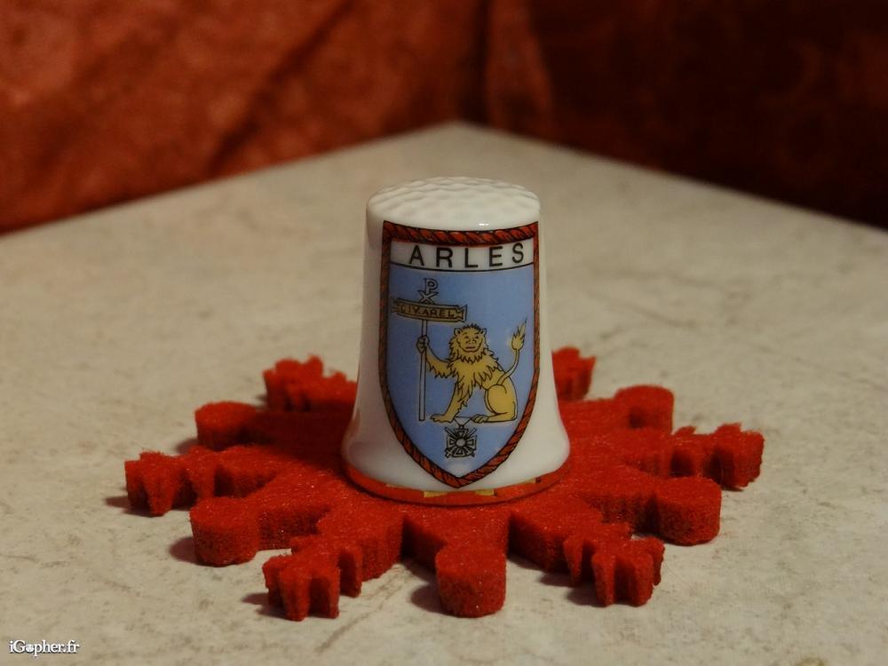 Dé collection Arles Blason. Matière : céramique, voir porcelaine. Origine : Arles est une commune du département des Bouches-du-Rhône, en Provence-Alpes-Côte d'Azur. Il s'agit de la plus grande commune de France métropolitaine avec quelque 75 893 hectares de superficie.