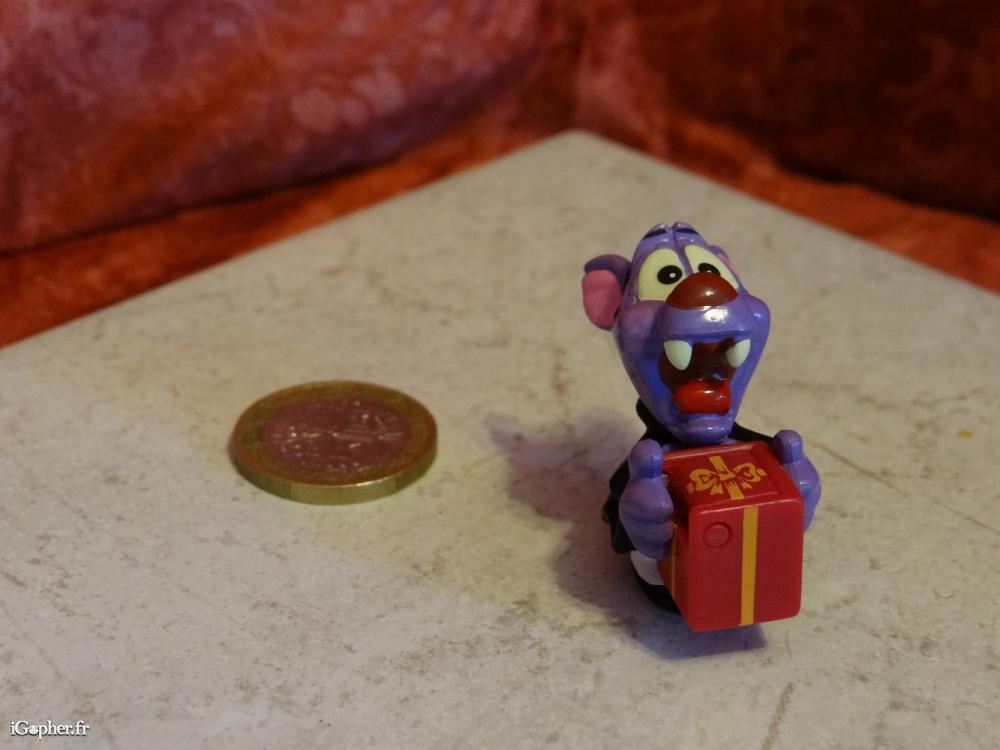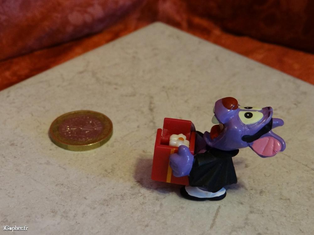 Figurine vampire Kinder Halloween boite pâquerette. Il vous suffit d'incliner sa tête pour que le coffre s'ouvre afin de faire apparaître une pâquerette.