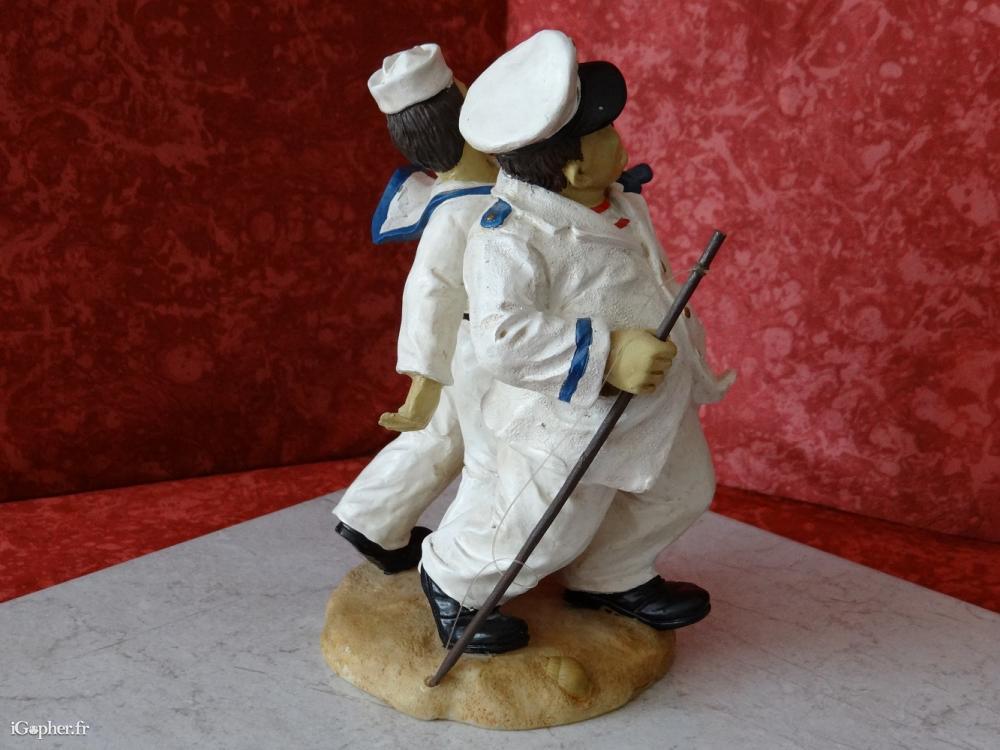 Cette figurine est en résine et en bon état. Elle représente les deux compères habillés en marins : Stan Laurel en capitaine et Oliver Hardy en mousse. Laurel et Hardy est le nom d'un duo comique constitué en 1927.