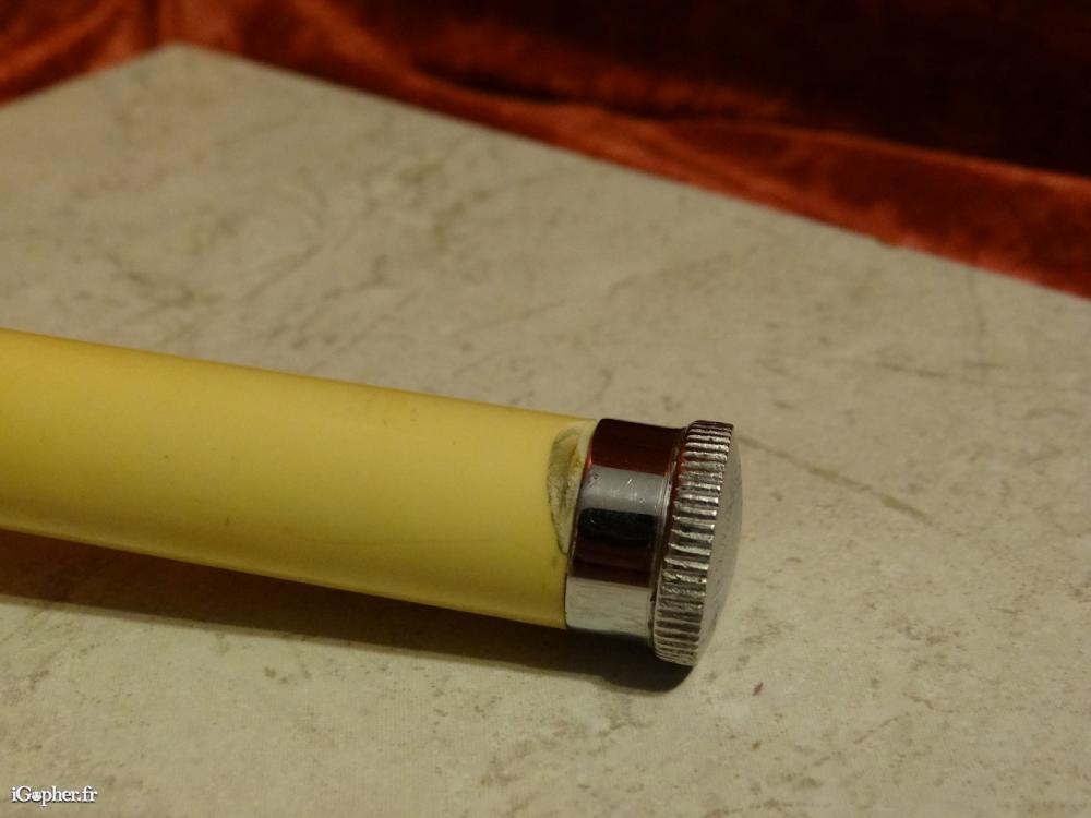 Longueur du rasoir 13 cm. Diamètre du manche 1,8 cm.