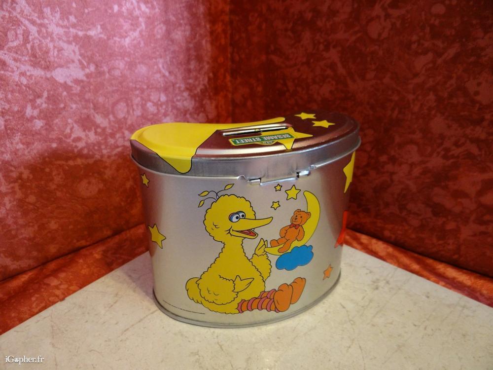 Une "Money Box" (une tirelire) à l'image de "Sesame Street", elle est en métal. C'est un article neuf, vendu avec un cadenas et deux clés.