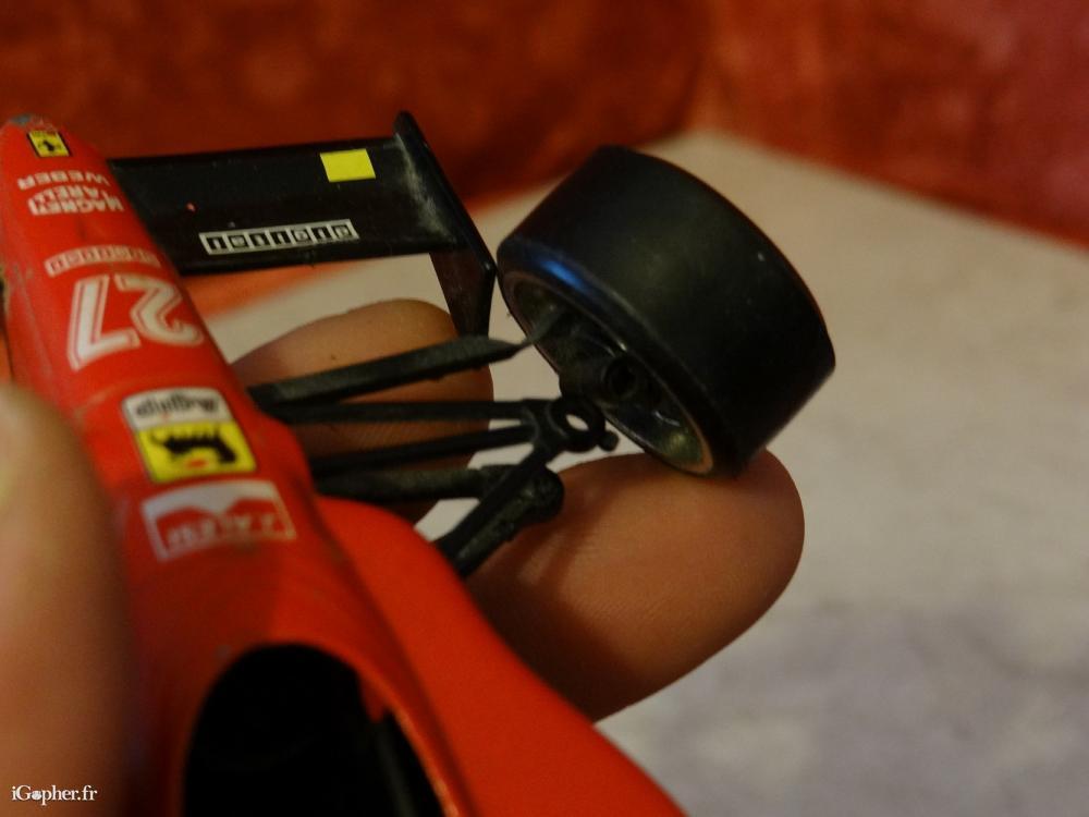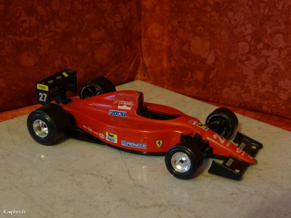 Une voiture miniature, c'est une Ferrari 641/2 Jean Alesi. Elle est d'occasion et à remettre en état, il manque un axe de roue (voir photo n°2).