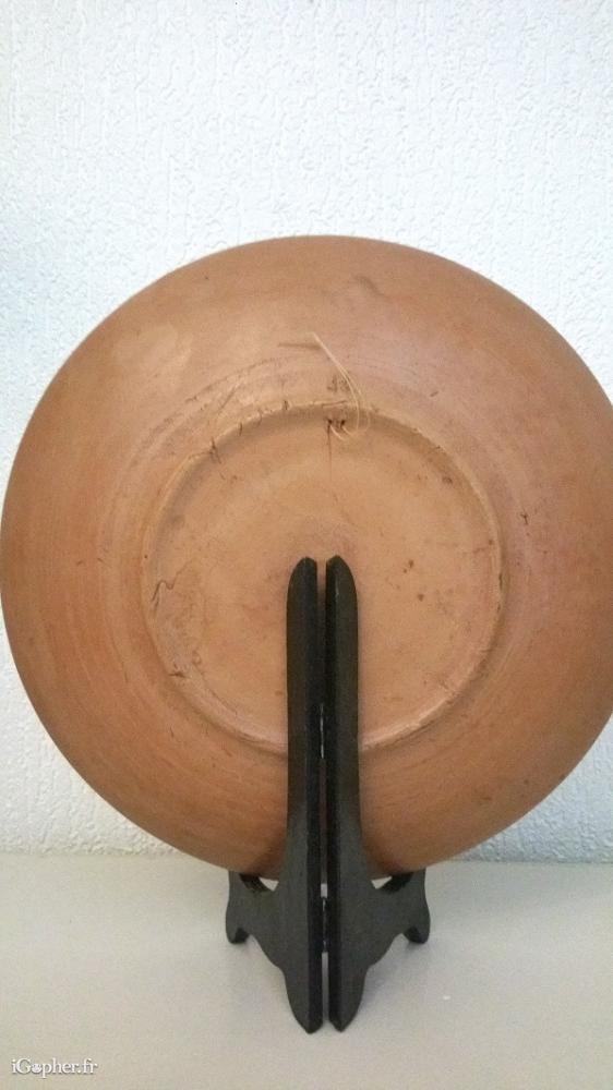 Une assiette décorative avec un relief, elle est en terre cuite, faite à la main. Cette assiette provient de La Cappadoce en Turquie.