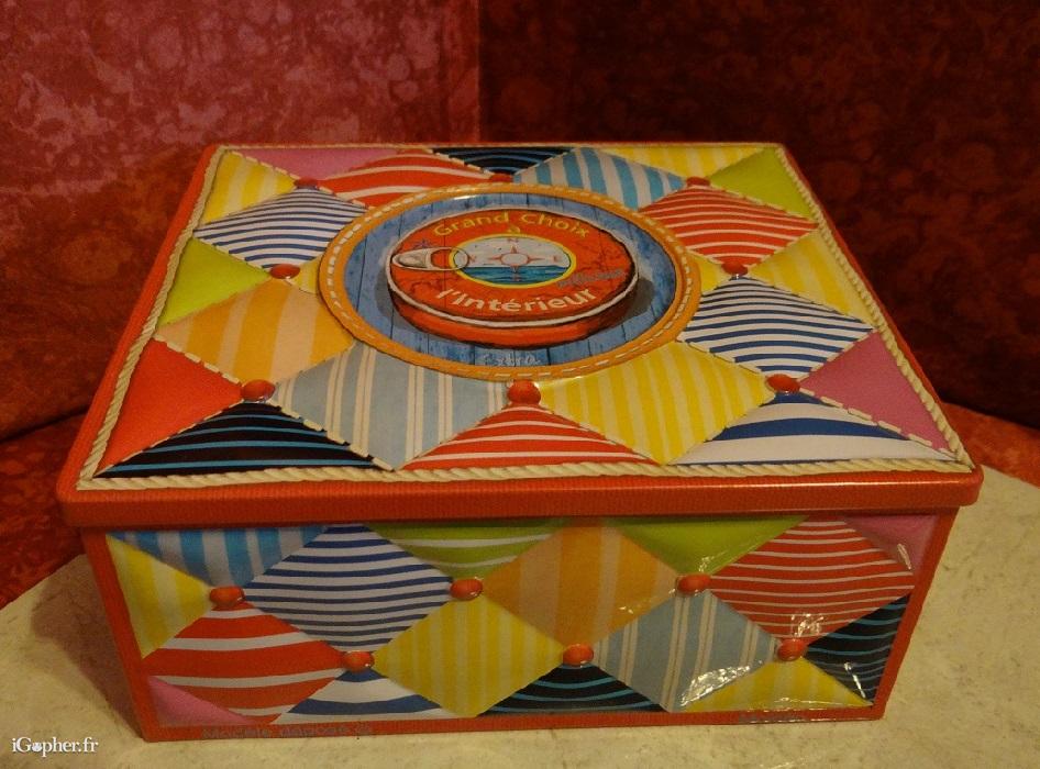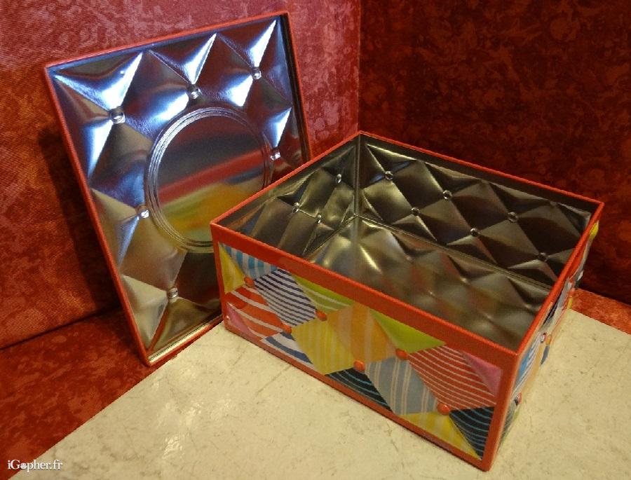 Boite en métal. Boite de rangement. Boite métallique avec un style matelassé.