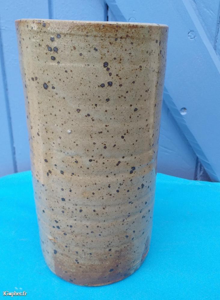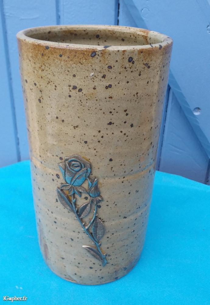 Brique à vin ou rafraichisseur en grès avec une rose en étain.