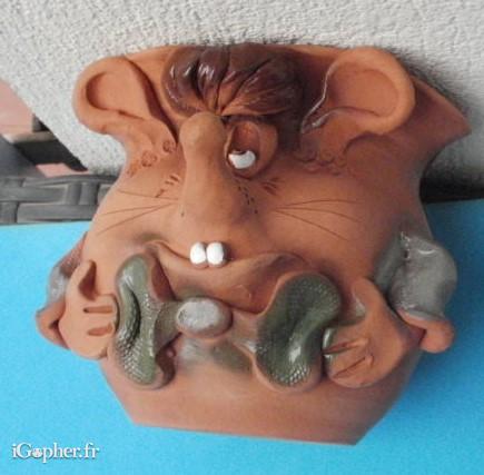 Poterie Cache pot tête de souris comique en terre cuite