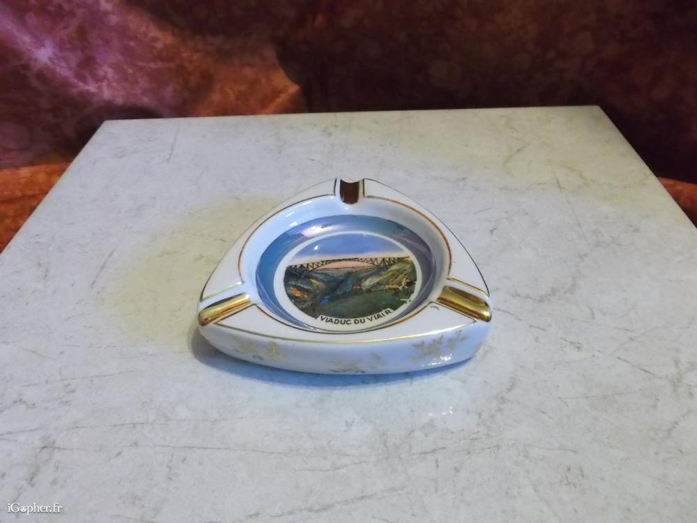 Un cendrier en céramique avec un motif représentant le Viaduc de Viaur. Il est en bon état.