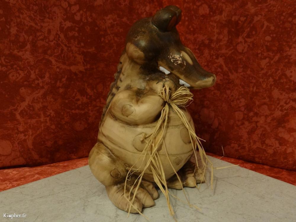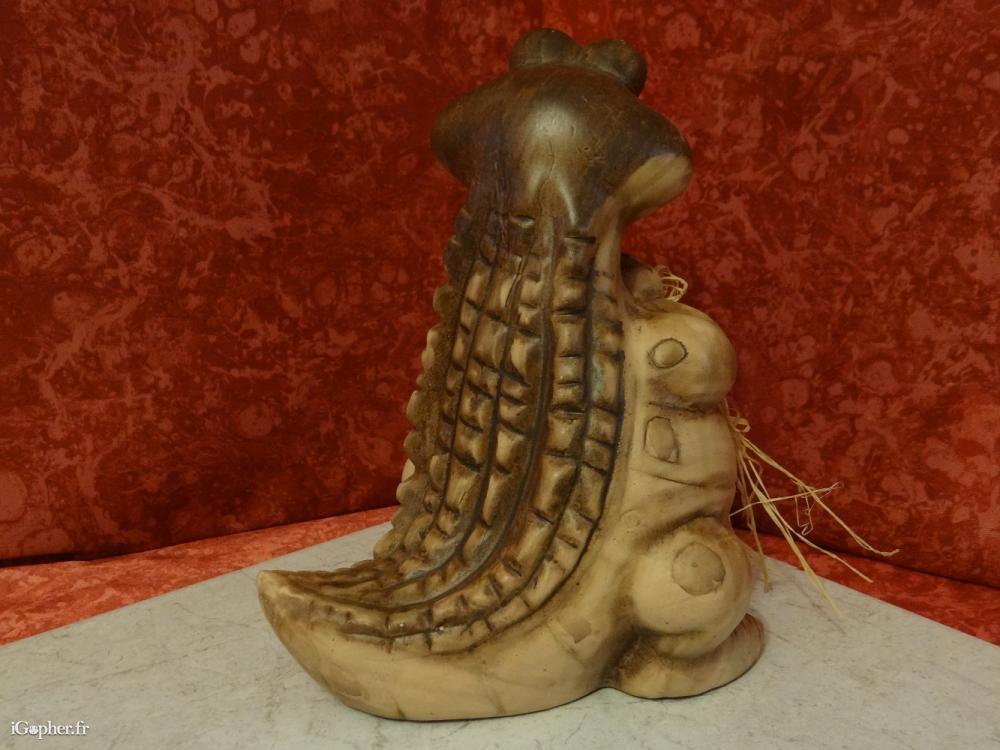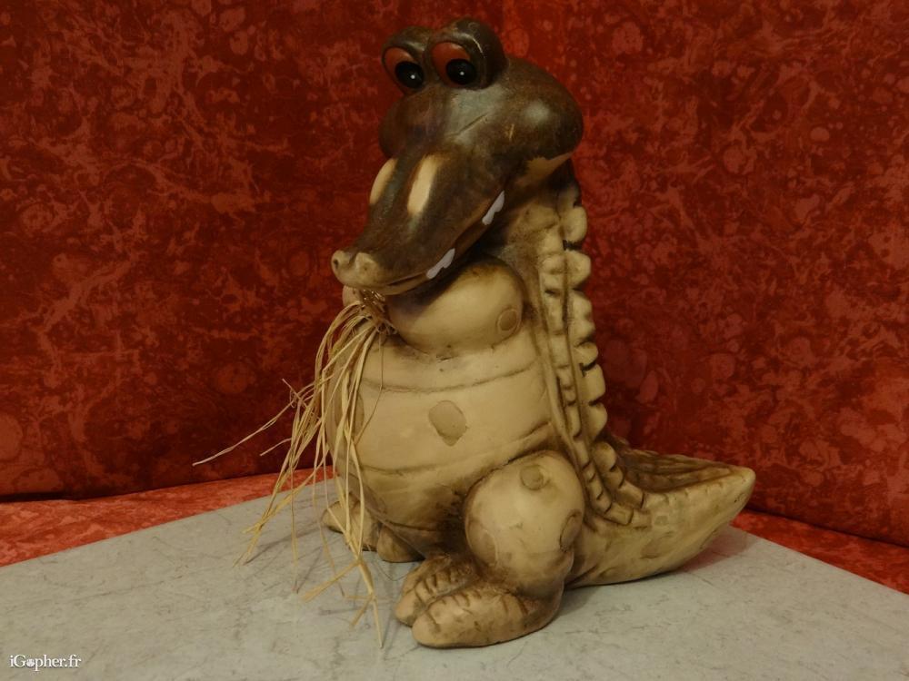 Une figurine représentant un crocodile. Elle est en bon état et en céramique.