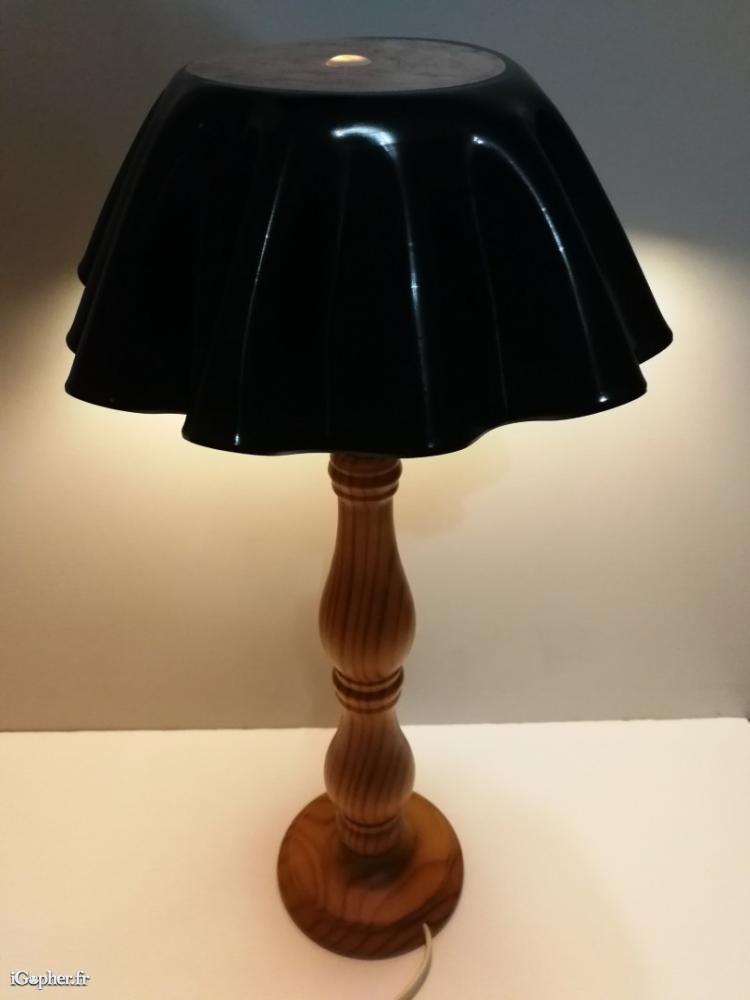 Lampe en bois avec abat-jour vinyle 33 tours années 80
