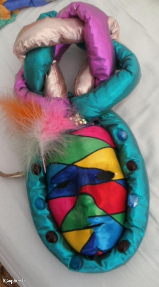 Un grand masque vénitien à suspendre, avec un coloris gais.