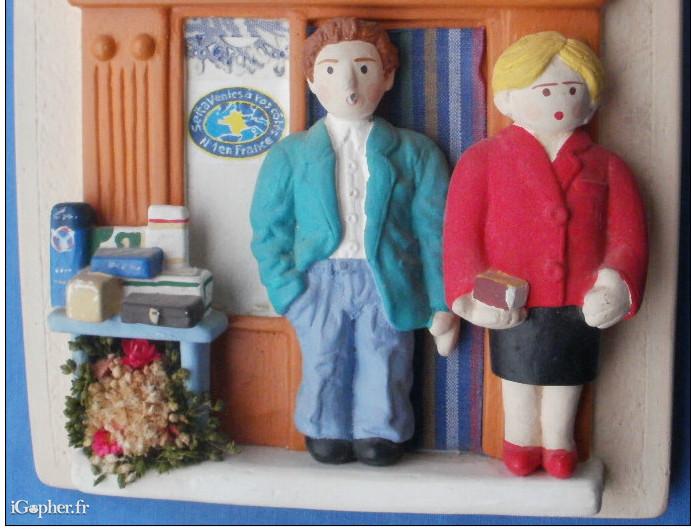 Elle représente un couple posant devant la devanture d'un marchand de tabac.