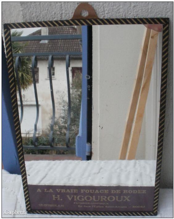 Un miroir publicitaire "A la vraie fouage de Rodez H. Vigouroux, Patissier confiseur".