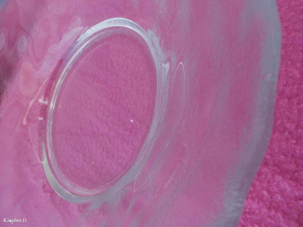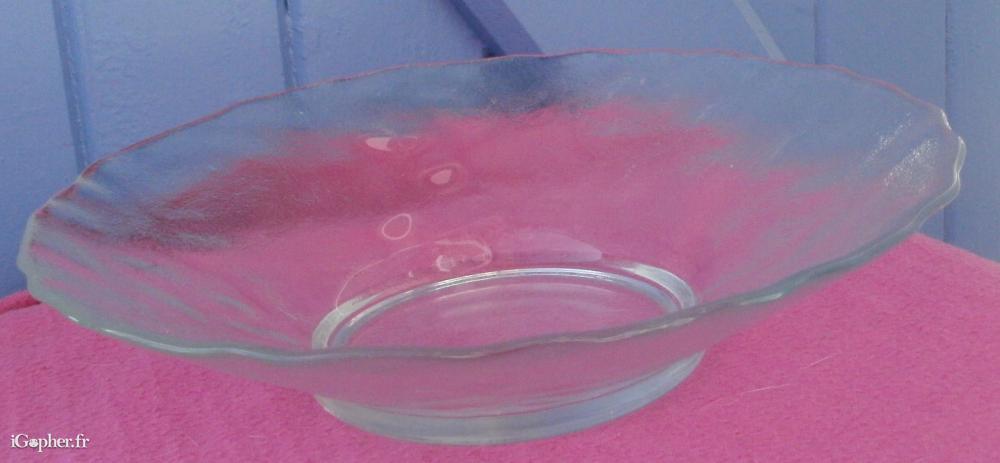 Un plat creux en verre, pouvant servir de corbeille à fruits ou autre.