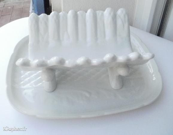 Ensemble plat et présentoir à asperge en porcelaine blanche. Sans marque.