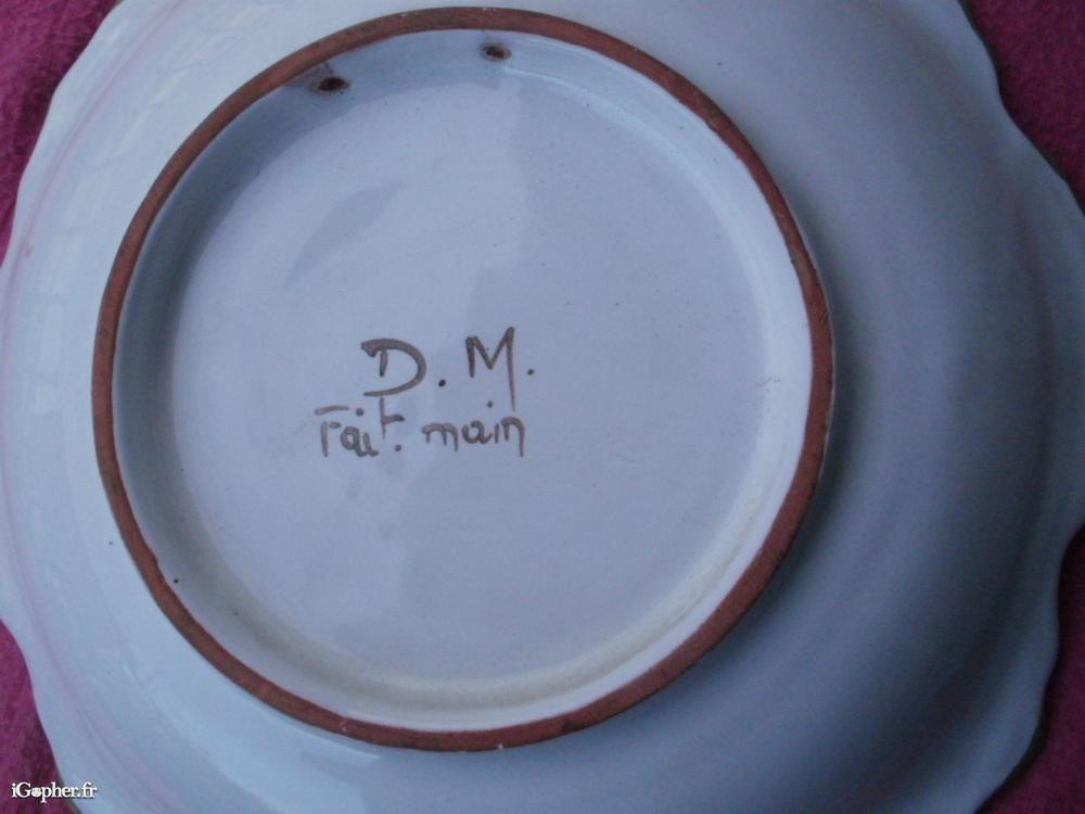 Plat creux rond MOUSTIERS fait main signé DM.