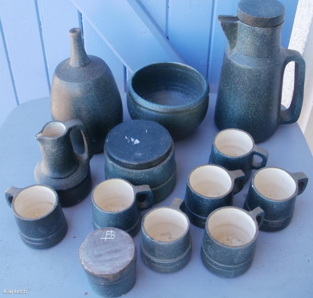Service à café en grès vert 13 pièces