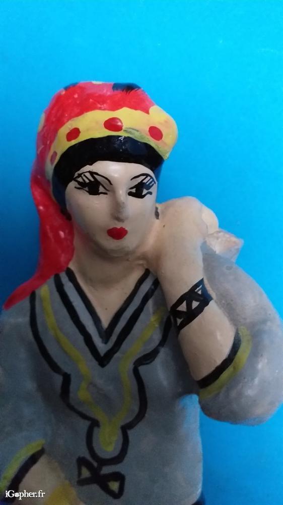 Statue de KABYLIE. Hauteur 25 cm. Très colorée. Probablement en plâtre.