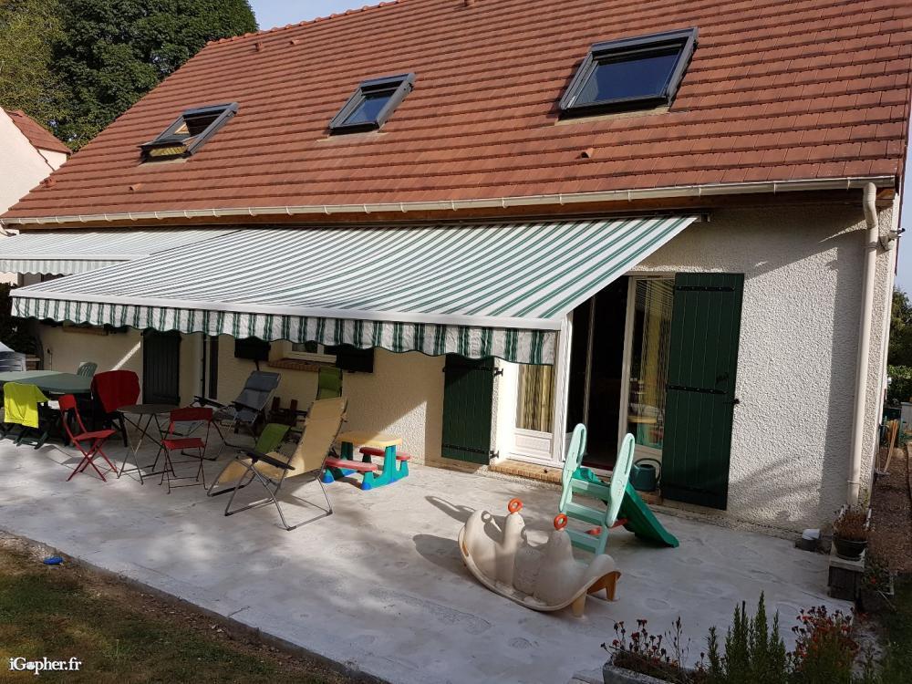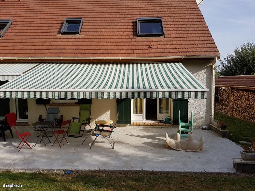 Store banne - 6 x 3.5 m de marque Stobag (Suisse). Store de qualité motorisé (Somfy) avec sécurité vent (anemomètre + boitier électronique de commande SOMFY).