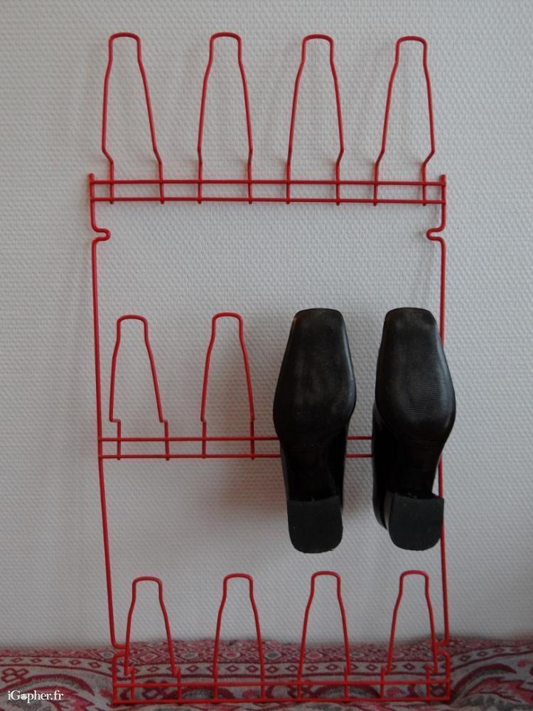 Un support mural pour ranger vos chaussures, il est d'occasion mais en bon état. Il permet la suspension de 6 paires de chaussures.