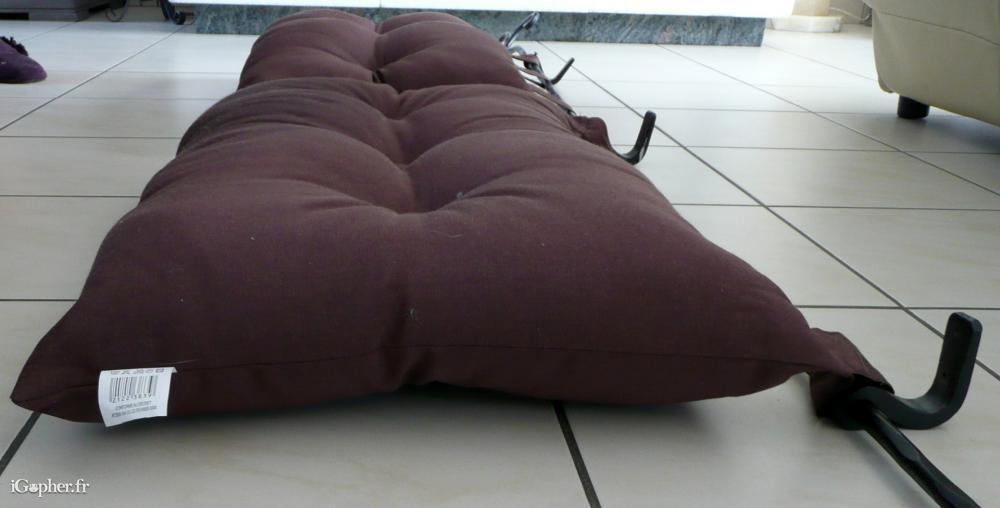 Matière des coussins : 55% Polyester, et 45% coton.