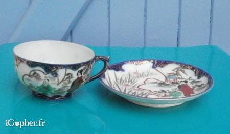 Tasse et sous-tasse chinoise en porcelaine fine.
