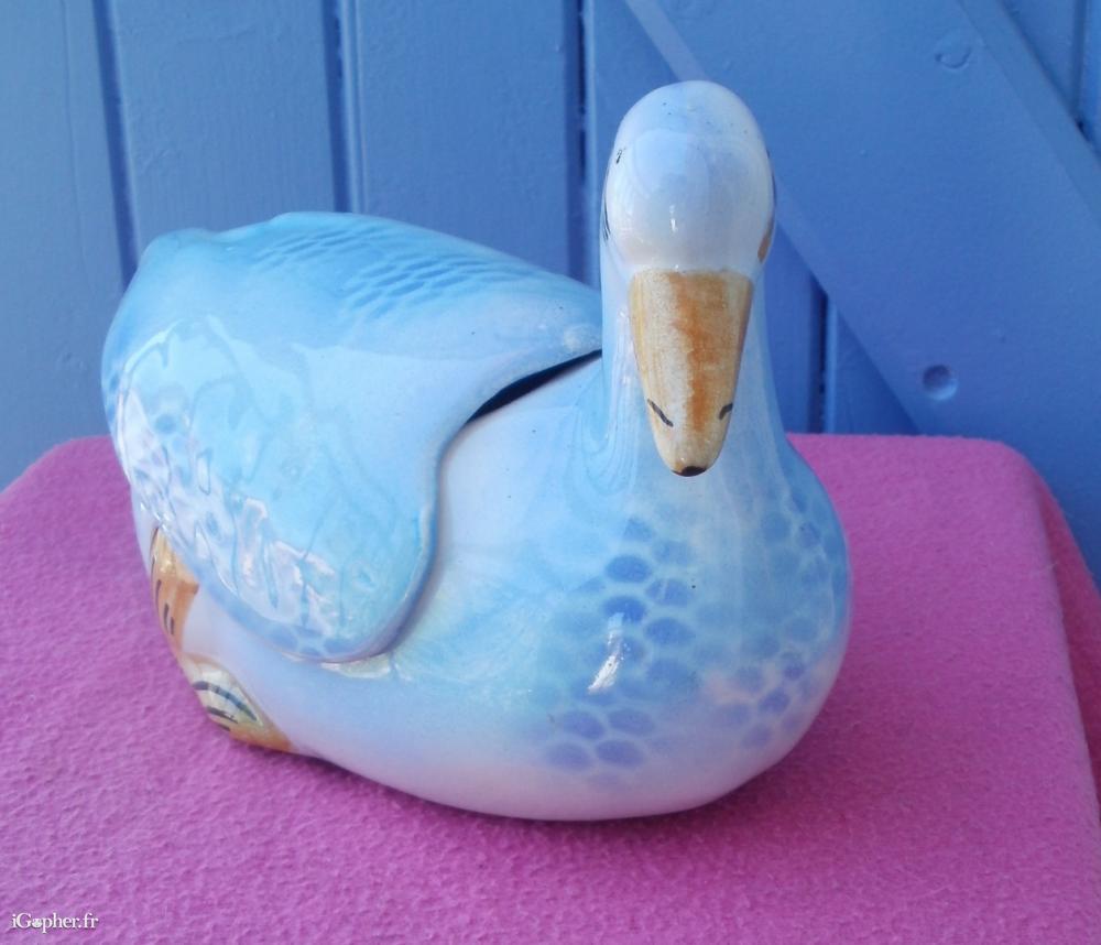 Un vide poche en forme de canard. Il est de couleur bleue et peut servir de vide poche, de bonbonnière etc.