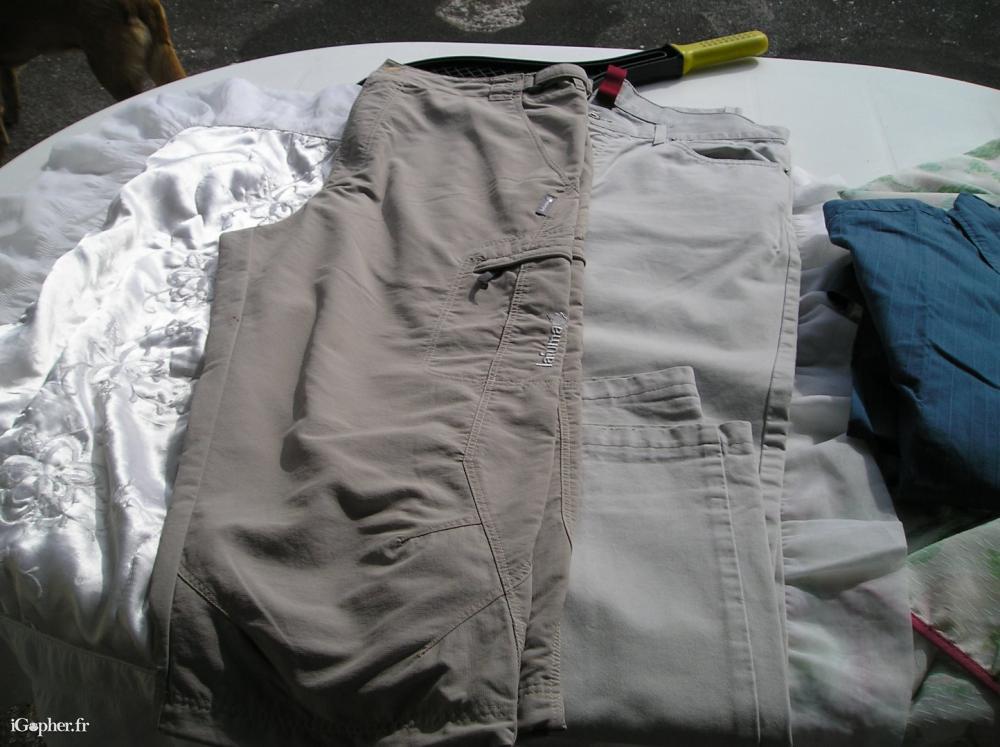 Un bernuda beige en bon état, de taille 42/44 et de marque Lafuma.
