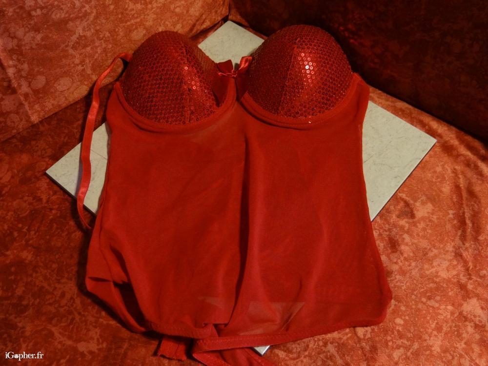 Ce body pour femme est en très bon état, il n'a jamais été porté. Il est rouge pailleté.