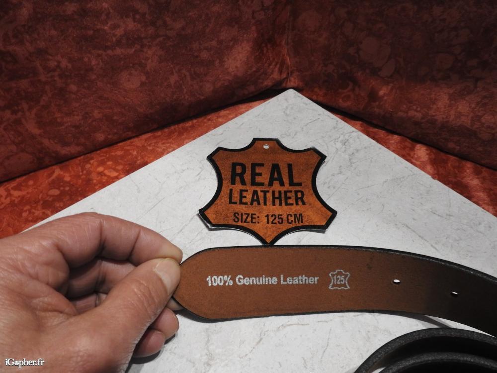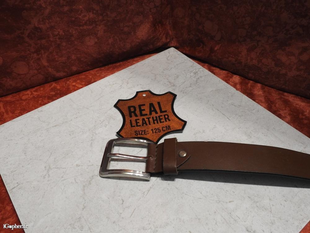 Ceinture en cuir marron, grande taille. 100% cuir véritable, boucle en métal chromé. Longueur 125 cm. Largeur 4 cm. Poids 168 grammes.