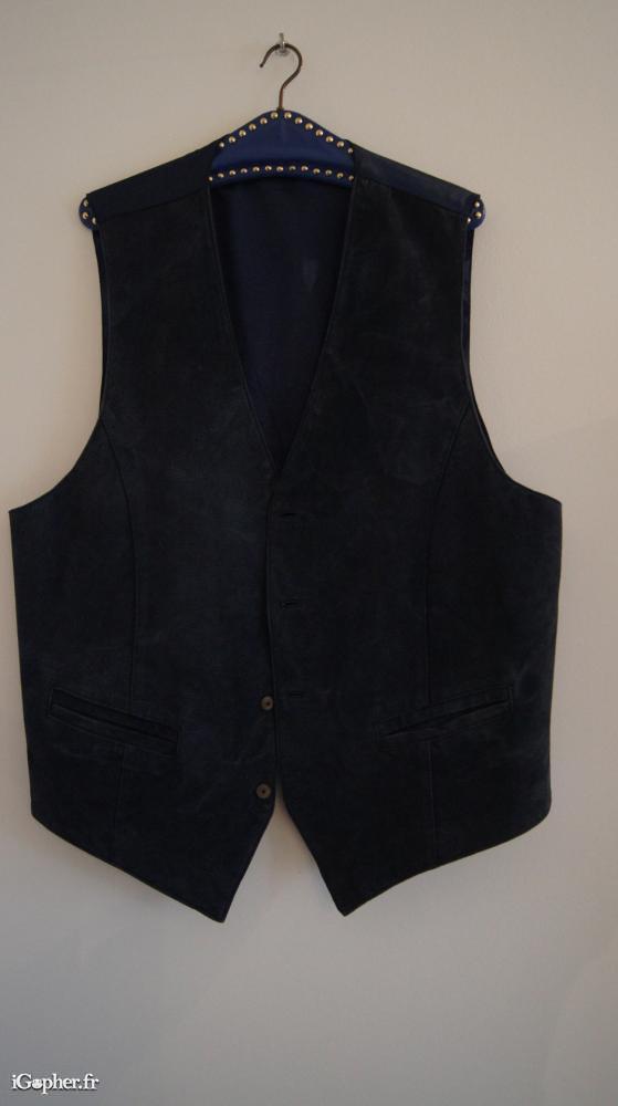Gilet de costume sans manche en cuir véritable.