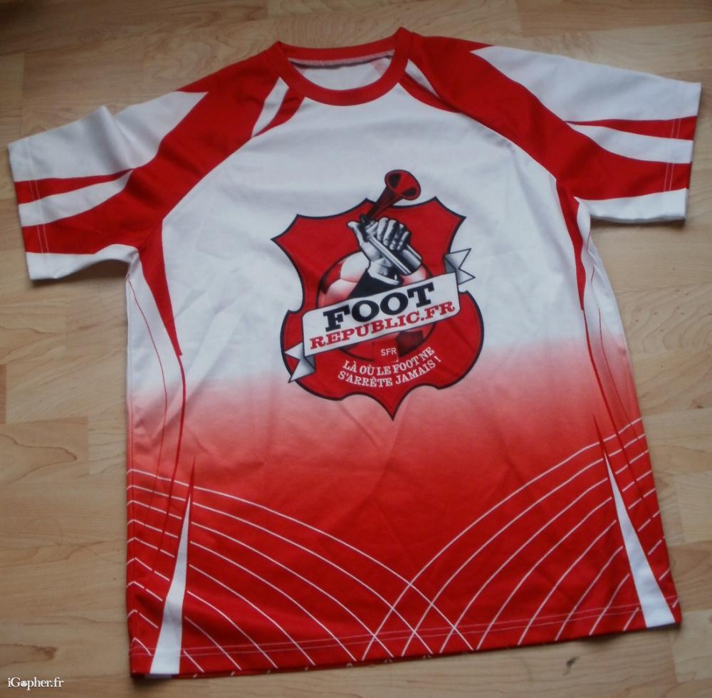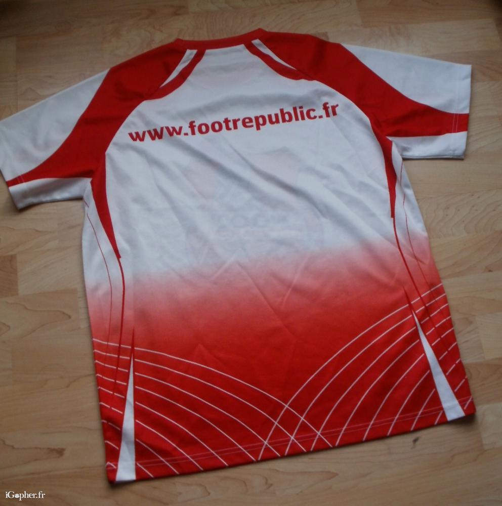 De couleur rouge et blanc, ce maillot de football a été créé pour promouvoir un site communautaire de SFR, pour tous les fans de foot : "Foot Republic, là où le foot ne s'arrête jamais".