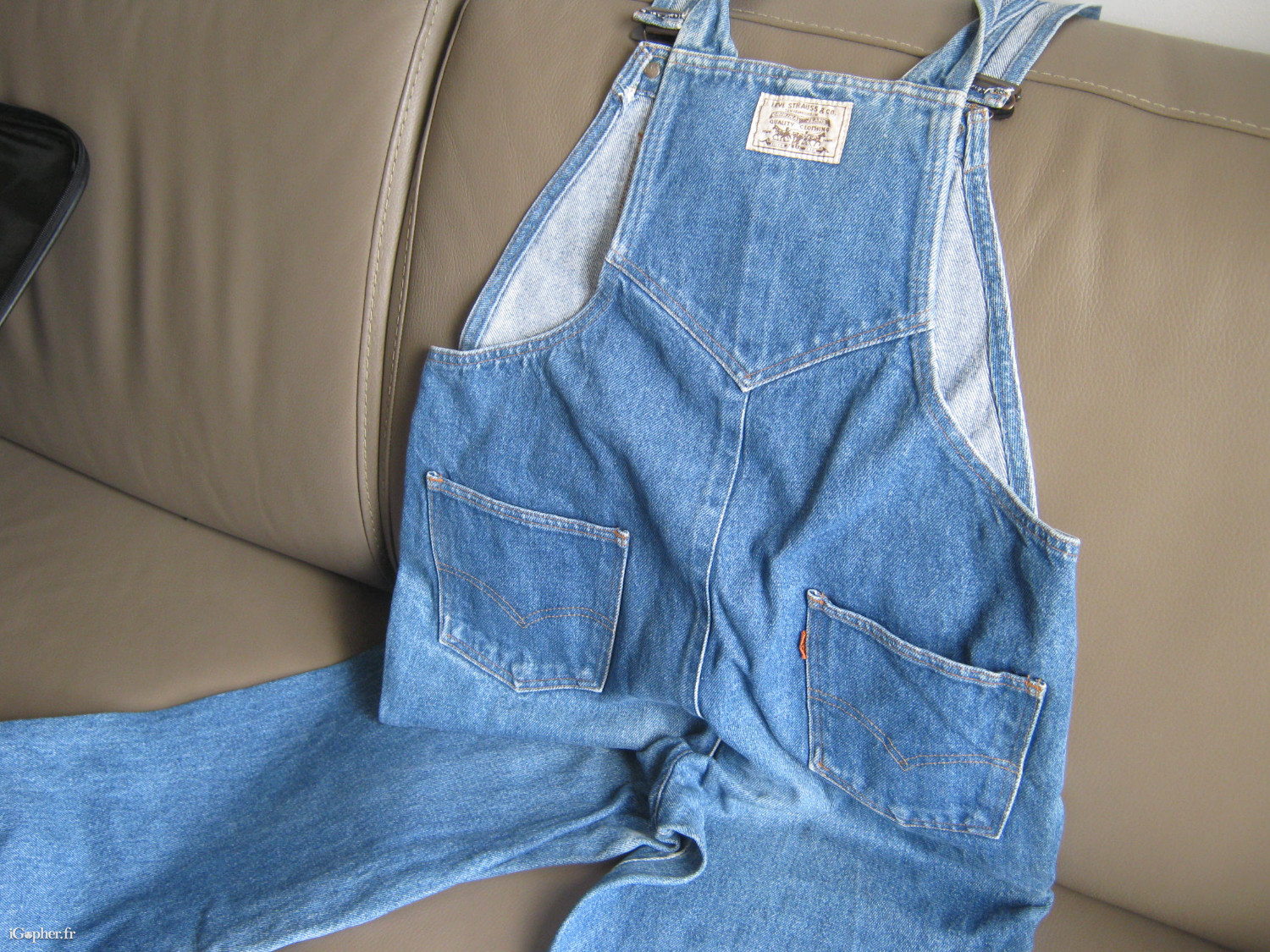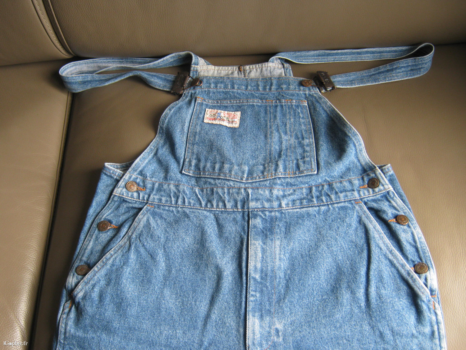 Dimension : hauteur 138 cm - ceinture 94 cm - bassin 108 cm - entre-jambe 84 cm - largeur du bas de la jambe 18 cm - longueur des bretelles 55 cm. (parfait pour une personne mesurant plus 1 mètre 75)Unique pour les collectionneurs - les amateurs de denim vintage - ou pour un look décontracté et intemporel.Etat du produit : Occasion : très bon état