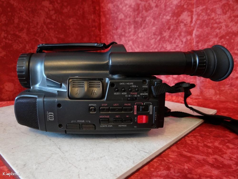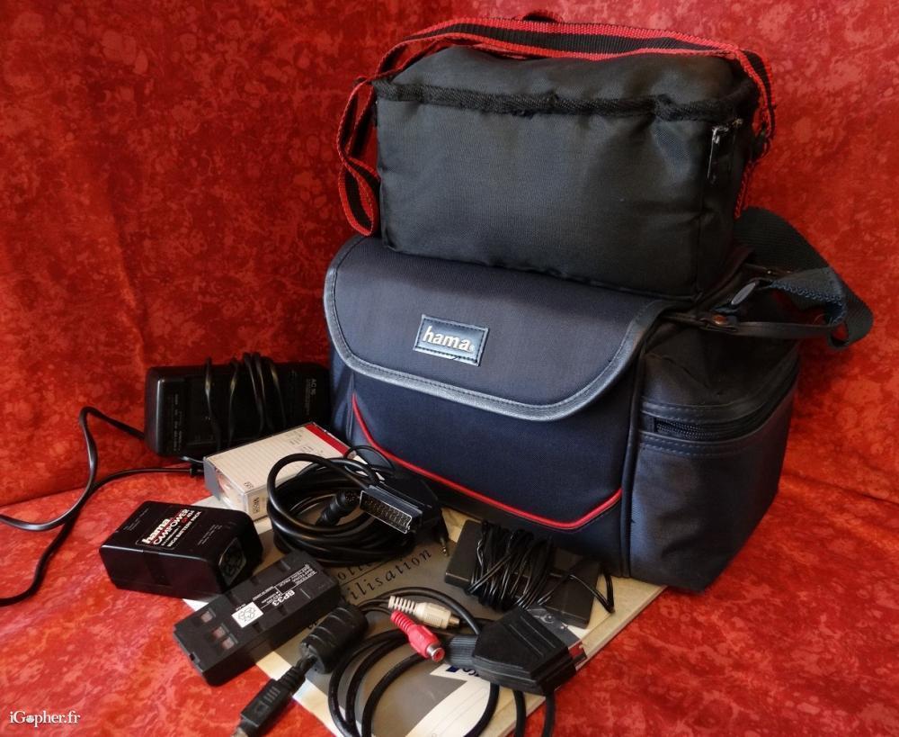 C'est un caméscope VHS HQ. L'ensemble est d'occasion mais en bon état physique et de fonctionnement. Il est vendu avec 2 batteries, un chargeur secteur, une sacoche pour le caméscope, un cordon TV, une notice en Français et une sacoche Hama plus grande afin de ranger le caméscope avec sa housse, ainsi que les accessoires.